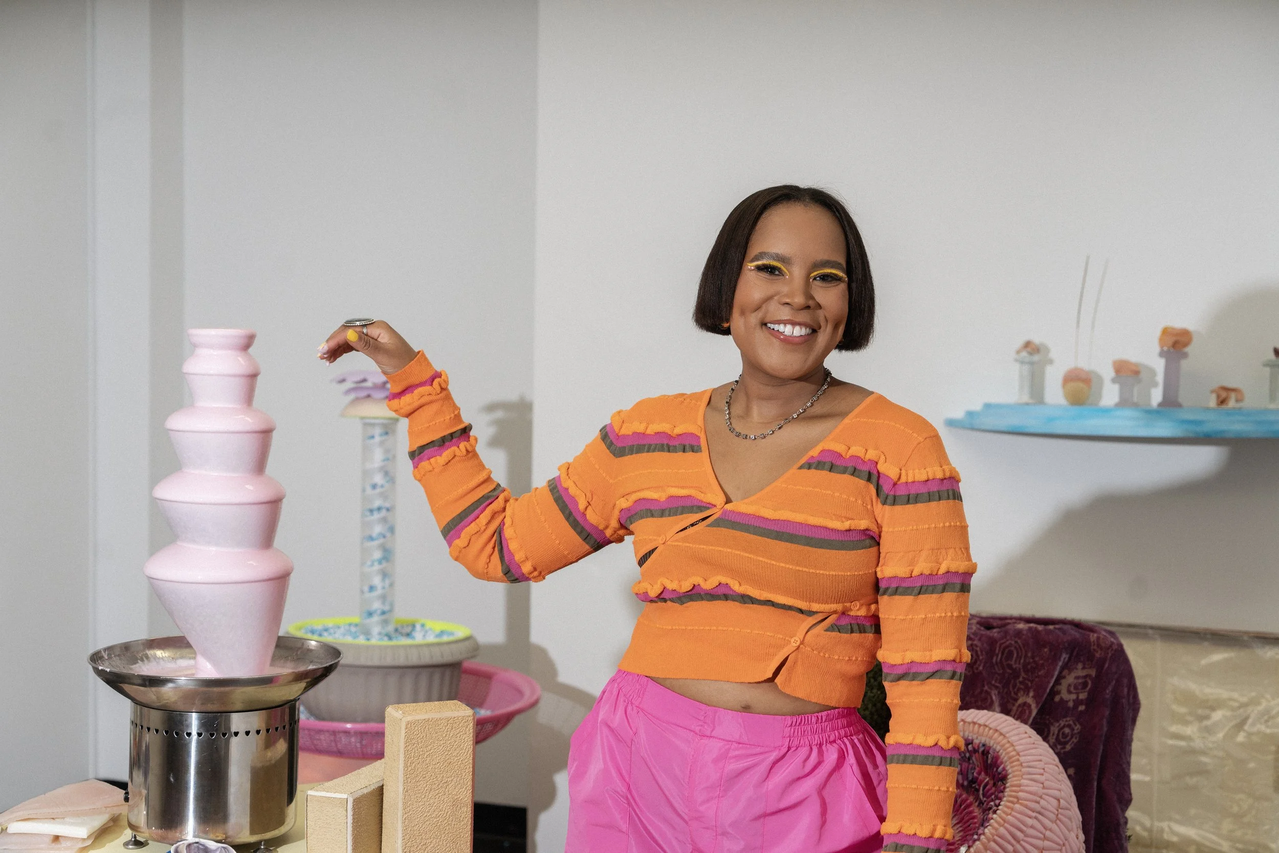 They are an interdisciplinary artist using sculpture, writing, and performance to create multisensory dedications. Unlike typical memorials, these dedications, including Council’s series Fountains for Black Joy, mine history then use dark humor and bright color in acts of veneration that honor the unsung while critiquing hierarchies of power.